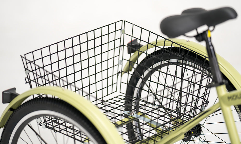 The trike's large rear basket is perfect for picnics or grocery shopping. It can hold up to 50 pounds, providing ample space to securely and conveniently carry all your essentials.